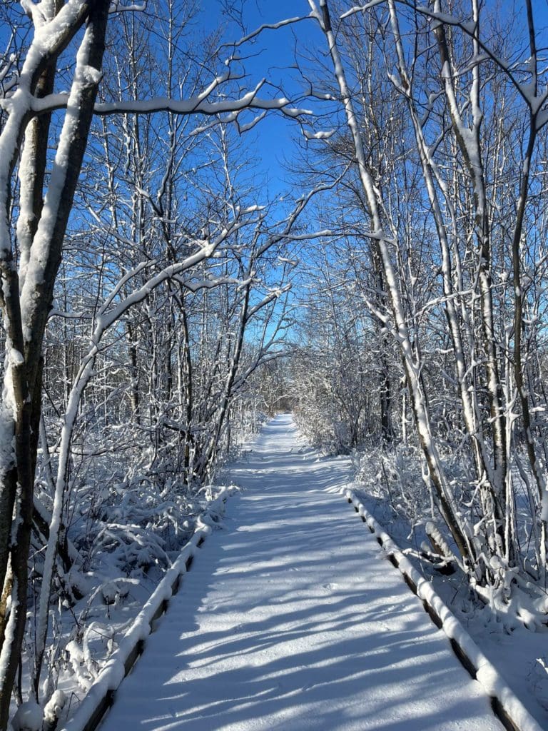 Beyond the habitat it creates, the snow that melts in the spring recharges our groundwater, rivers, and other waterways. It also creates essential breeding habitat for many amphibian species such as the wood frog and the blue-spotted salamander. These ephemeral pools fill in the spring and eventually dry up in summer. They are critical breeding grounds for many amphibians because they lack fish, which would prey on the amphibians’ eggs.